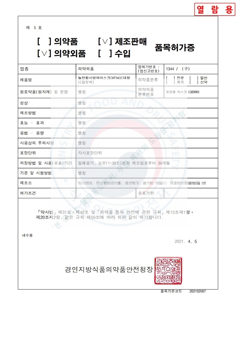 | ´ÃÂù Ȳ»ç ¹æ¿ª¸¶½ºÅ© KF94 ´ëÇü °ËÁ¤»ö